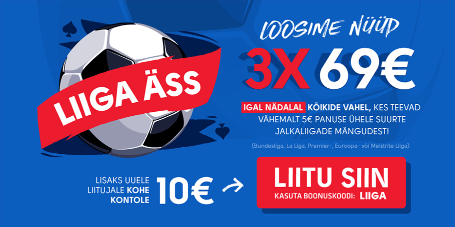 Tähelepanu! Tegemist on hasartmängu reklaamiga. Hasartmäng pole sobiv viis rahaliste probleemide lahendamiseks. Tutvuge reeglitega ja käituge vastutustundlikult! Hasartmängu probleemidele korral seadke kasiinokeeld ja tutvuge meie hasartmängusõltuvuse lehega.